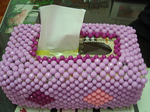 這是在醫院照顧兒子完成的串珠面紙盒。