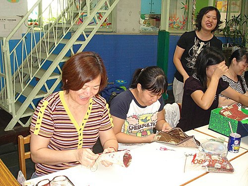 我們的幼稚園是全省第六家成立的托兒所,雖然經歷了56年的歷史,我們還是秉持著「慈」如人母、「愛」若己兒的精神來教育我們的下一代,雖然時代變遷,對幼教這份工作,我始終如一,今年開始為了能讓媽媽有個抒發情緒及成長的地方,我們開辦了媽媽教室活動,希望藉由我們的帶動媽媽們能踏出家庭走出廚房,和寶貝們共同成長。欣慰的是我有很棒的支持者,就是我最敬愛的媽媽們,快一年了她們從生疏到一點就通,我也與有榮焉ㄋㄟ!這是我們花倆星期作的鉛筆盒也可以當化妝包唷!很厲害吧!