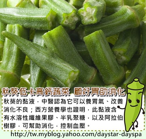 秋葵低卡高鈣蔬菜 適合老年人、減肥族秋葵是很好的鈣質來源,每100公克含有80至100毫克的鈣,略低於牛奶(每100公克含鈣100毫克)。鈣質遇草酸結合,會形成草酸鈣,草酸會阻斷人體對鈣質的吸收,但秋葵的草酸含量低,較不會阻斷人體對鈣的吸收,使鈣的吸收利用率可達五到六成。